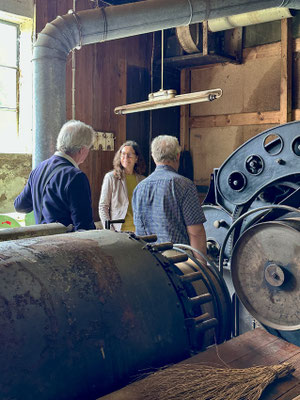 Neben den historischen Gebäuden und Maschinen zeigte Frau Röpcke großes Interesse an der bis in die 2010er Jahre reichenden Geschichte des Familienbetriebs, sowie dem aktuellen Stand der Förderung durch das Landesamt für Denkmalpflege in Kiel im Hinblick auf die anstehende Sanierung der historischen Gebäude.